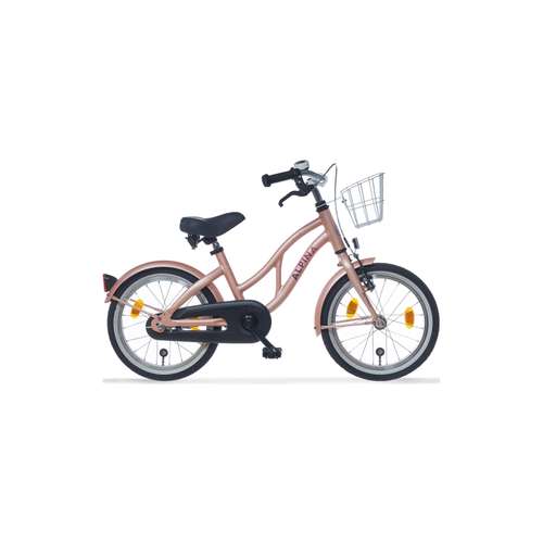 Alpina fiets Ocean Meisjes, 16inch. Kleur: Misty Pink Matt. Uitgerust met achter een remnaaf en een V-brake voor, inclusief mandje, aluminium frame.