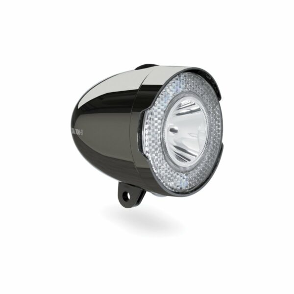 De AXA 706-B is een standaard LED batterijkoplamp met een lichtopbrengst van 15 lux, geschikt voor retro- en omafietsen.