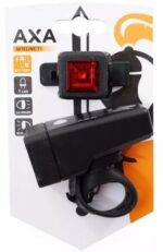 De AXA Niteline T1 is een set van een torch voorlicht dat werkt op AAA batterijen en achterlicht dat werkt op CR2032 batterijen.