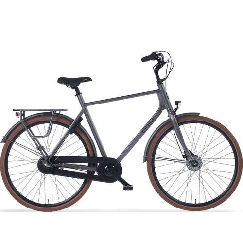 Cortina Foss herenfiets in framemaat 57cm. Kleur: Lead Metal Matt. Uitgerust met achter een Shimano Nexus 3-traps versnellingsnaaf met rollerbrake en voor een Shimano naafdynamo met rollerbrake. 09000-10435 Matt