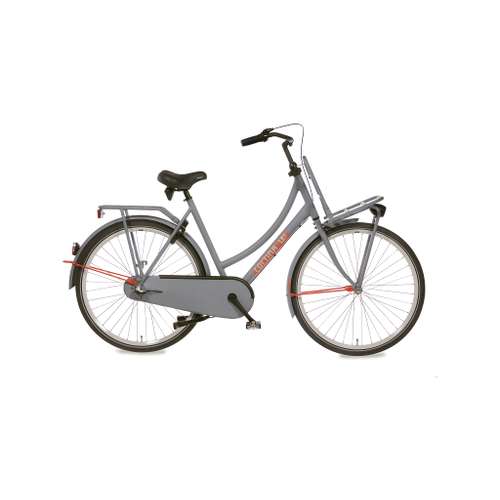 Cortina Transport U4 damesfiets in framemaat 50cm. Kleur: Stone Grey Matt. Uitgerust met achter een Shimano Nexus 3-traps versnellingsnaaf met terugtraprem en voor een standaard naaf. Opvallende details: aluminium frame, stuurslot, voordrager.