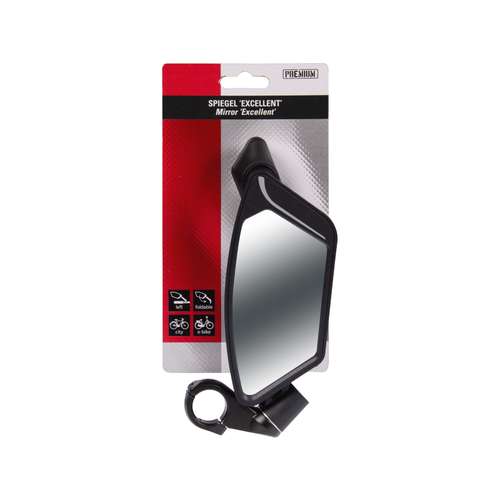 De Simson Spiegel Excellent is een zeer sterke spiegel voor de veeleisende e-bike gebruiker, maar misstaat door de moderne uitstraling op geen enkele fiets. De lens van de Simson Spiegel 'Excellent' is gemaakt van zeer sterk veiligheidsglas. De ‘arm’ is gemaakt van vezel versterkt nylon en de stuurklem is gemaakt van aluminium. Hierdoor is de Simson Spiegel 'Excellent' zeer ligt van gewicht en tegelijk erg sterk en duurzaam. De spiegel is in lengte en hoek verstelbaar en kan worden ingeklapt als de fiets in een fietsenstalling wordt geplaatst. De Simson Spiegel 'Excellent' is geschikt voor stuurdiameters tot 22,2 cm.