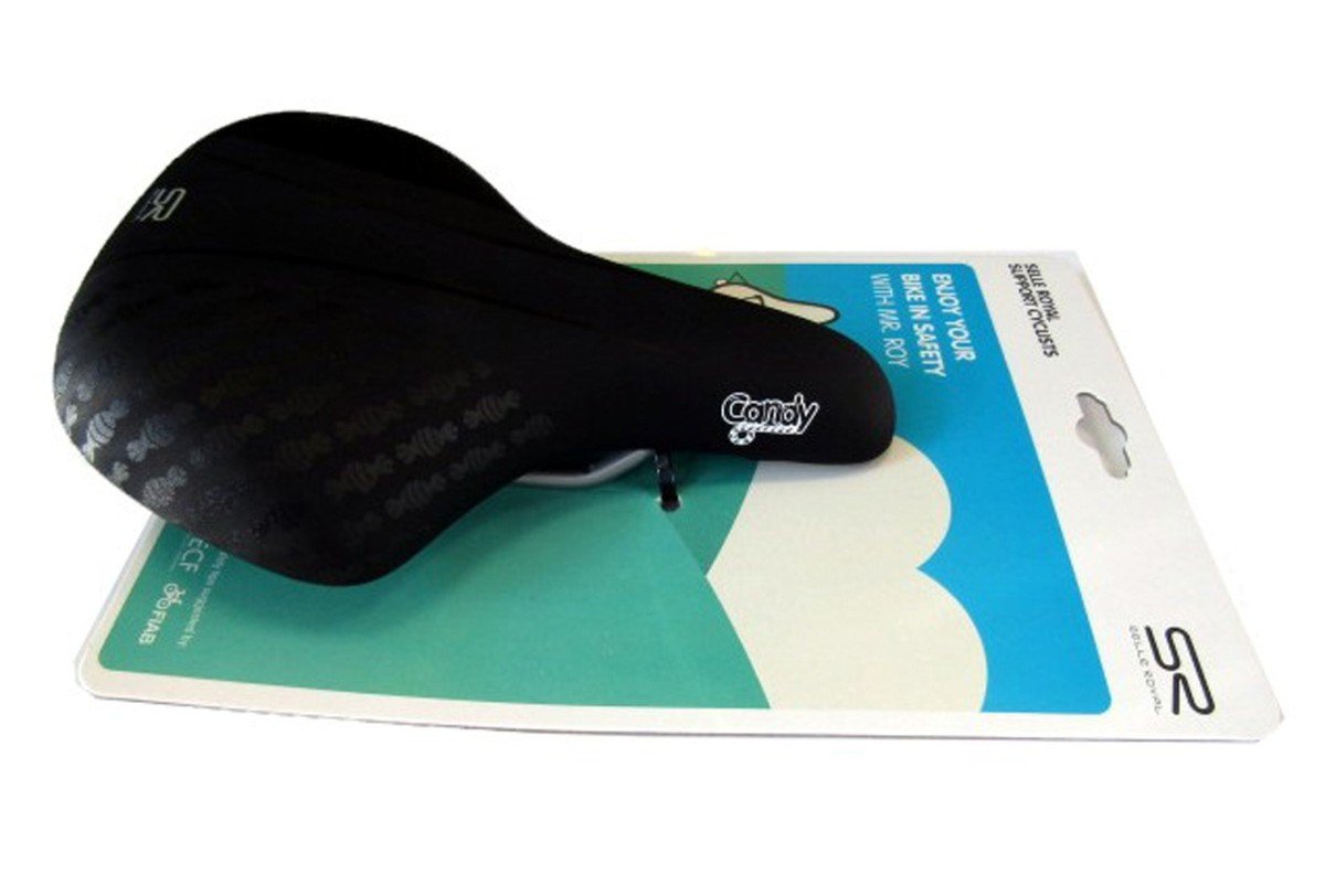 Candy is een zadel dat geschikt is voor meisjesfietsen met wielen van 16, 20 of 24. Het zadel is opgevuld met een schuimmatrix en versierd met een minimalistisch ton sur ton design. De open celstructuur van de schuimmatrix zorgt voor een hogere elasticiteit en een beter ademend vermogen. Hierdoor ontstaat een onverslijtbaar en comfortabel zadel. Het gepatenteerde clip systeem aan de achterkant van het zadel maakt het heel gemakkelijk om een Selle Royal zadeltasje of ander accessoire aan te brengen.